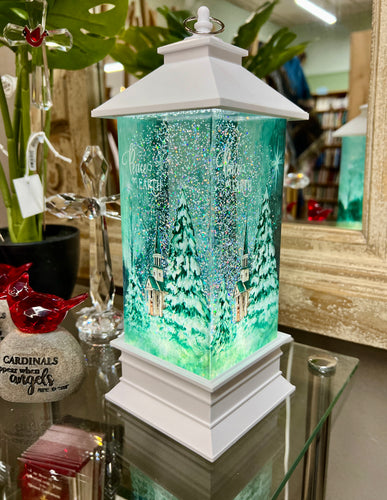 LED Light Up Shimmer Winter Church Lantern - Peace on Earth