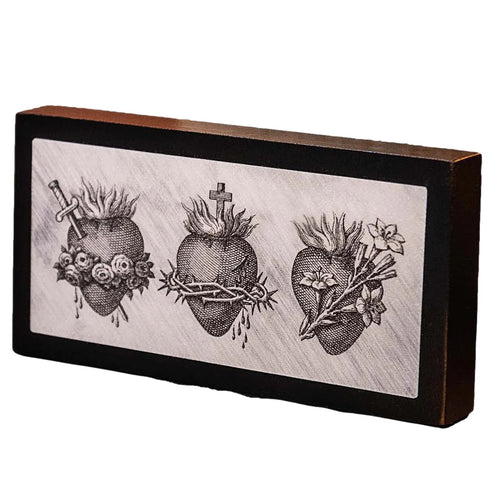 Three Hearts of the Holy Family Black Wood Decorative